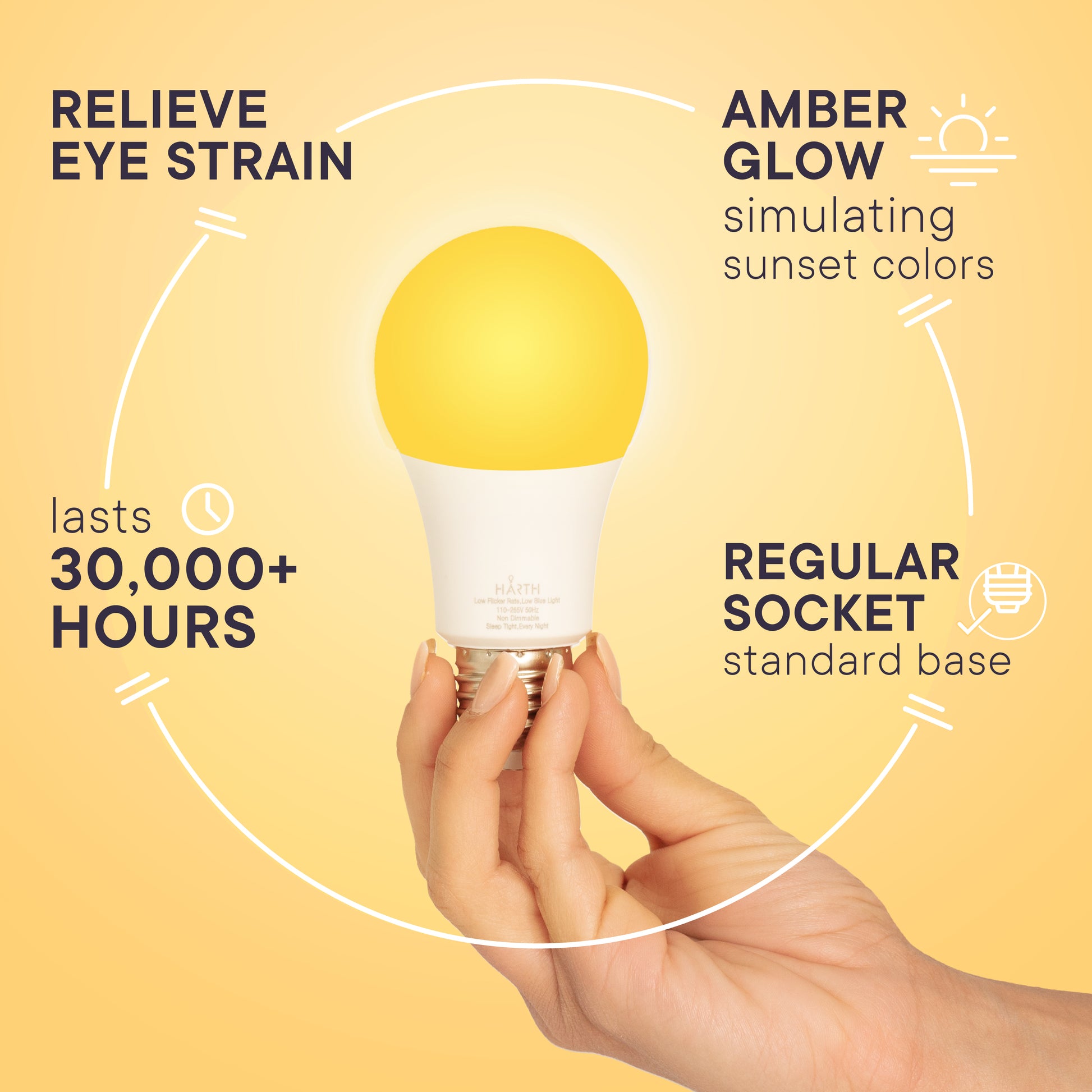 - FIGHT FATIGUE with a Natural, restful sleep. Flip the switch to an LED light specifically engineered to help you sleep better, and feel less fatigued during the day. The amber glow LED bulb is best used in a bedside lamp, while preparing for sleep. Save money on sleep aids, and sleep therapy, by tapping into your biological clock.